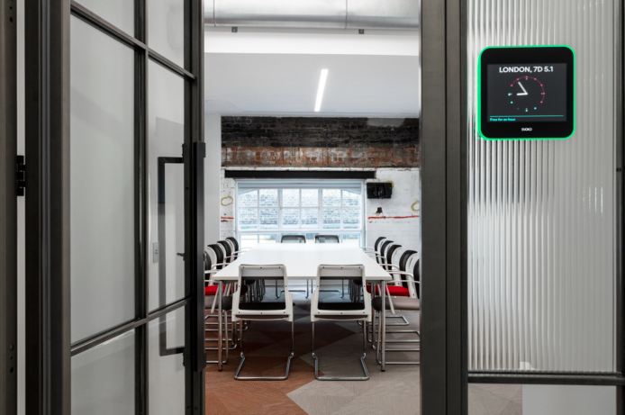 通过实景图可以看出,在会议室空间里,正方形的设计空间,白色的会议桌椅流线型的玻璃隔断,白色的灯光照射,给人一种现代简约风的设计风格,灰色地毯与沙发灰色背景想辉映,把高级灰运用得如火纯青,使人一进入到这个办公室给人与专业、理性的感觉,这点特别符合公司的企业文化。